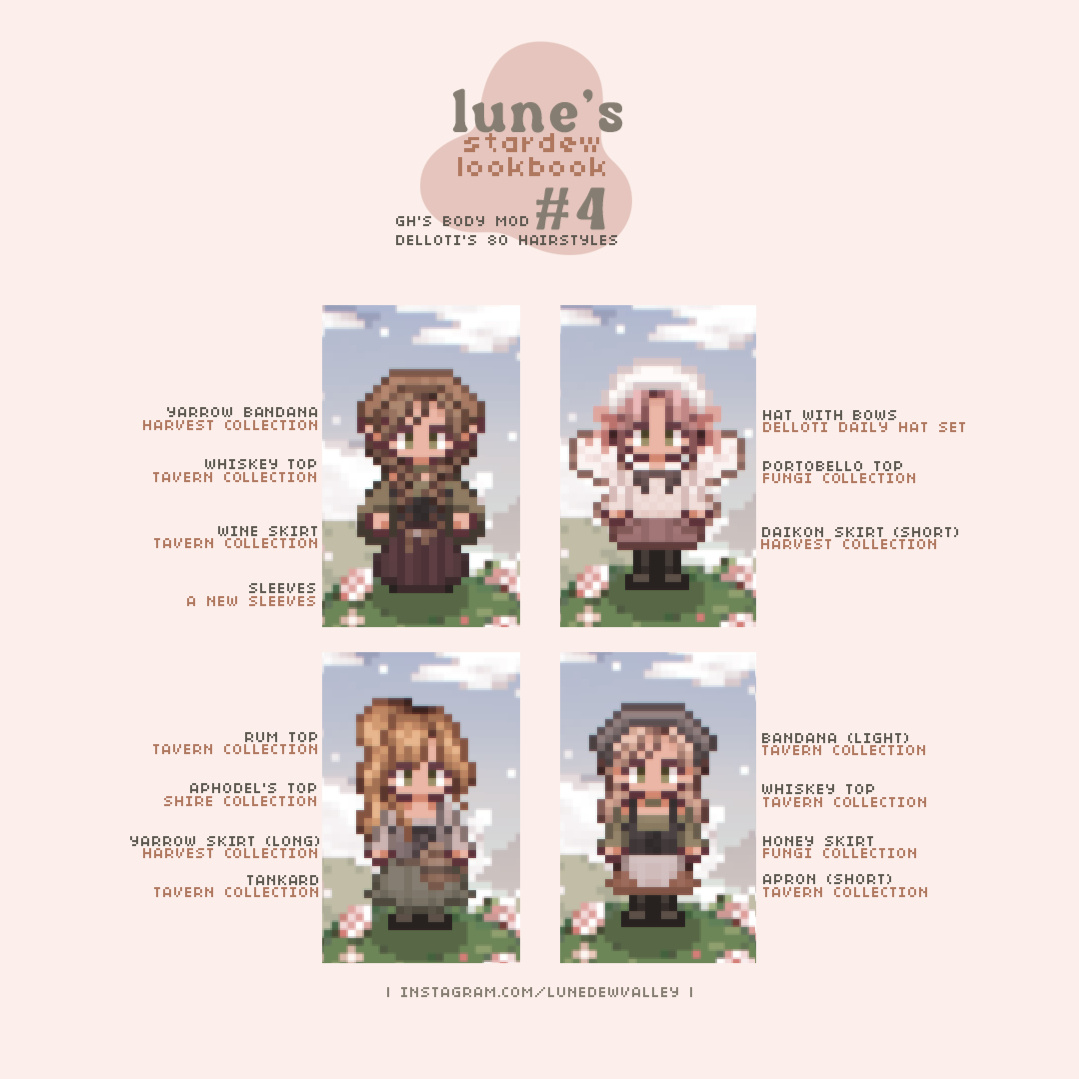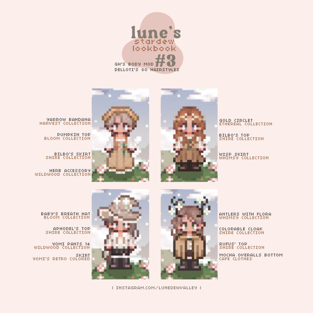 I'm Lune! I'm a Stardew Valley mod creator who tries to bring a touch of magick and whimsy to your game with witchy and cottagecore-inspired furniture and clothing mods. Thanks for checking out my work! ❤