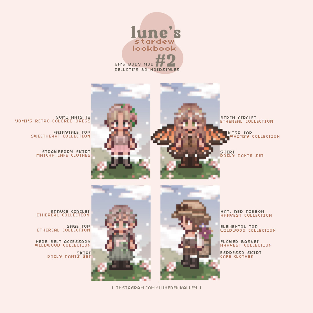 I'm Lune! I'm a Stardew Valley mod creator who tries to bring a touch of magick and whimsy to your game with witchy and cottagecore-inspired furniture and clothing mods. Thanks for checking out my work! ❤